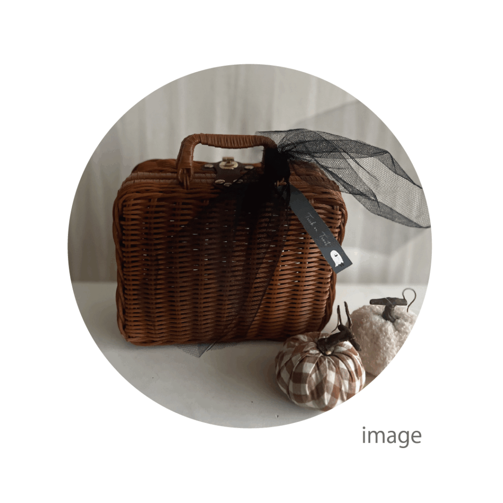 大人気のトランク風のカゴにハロウィンの飾りをつけよう!ハロウィンの仮想のワンポイントにも!