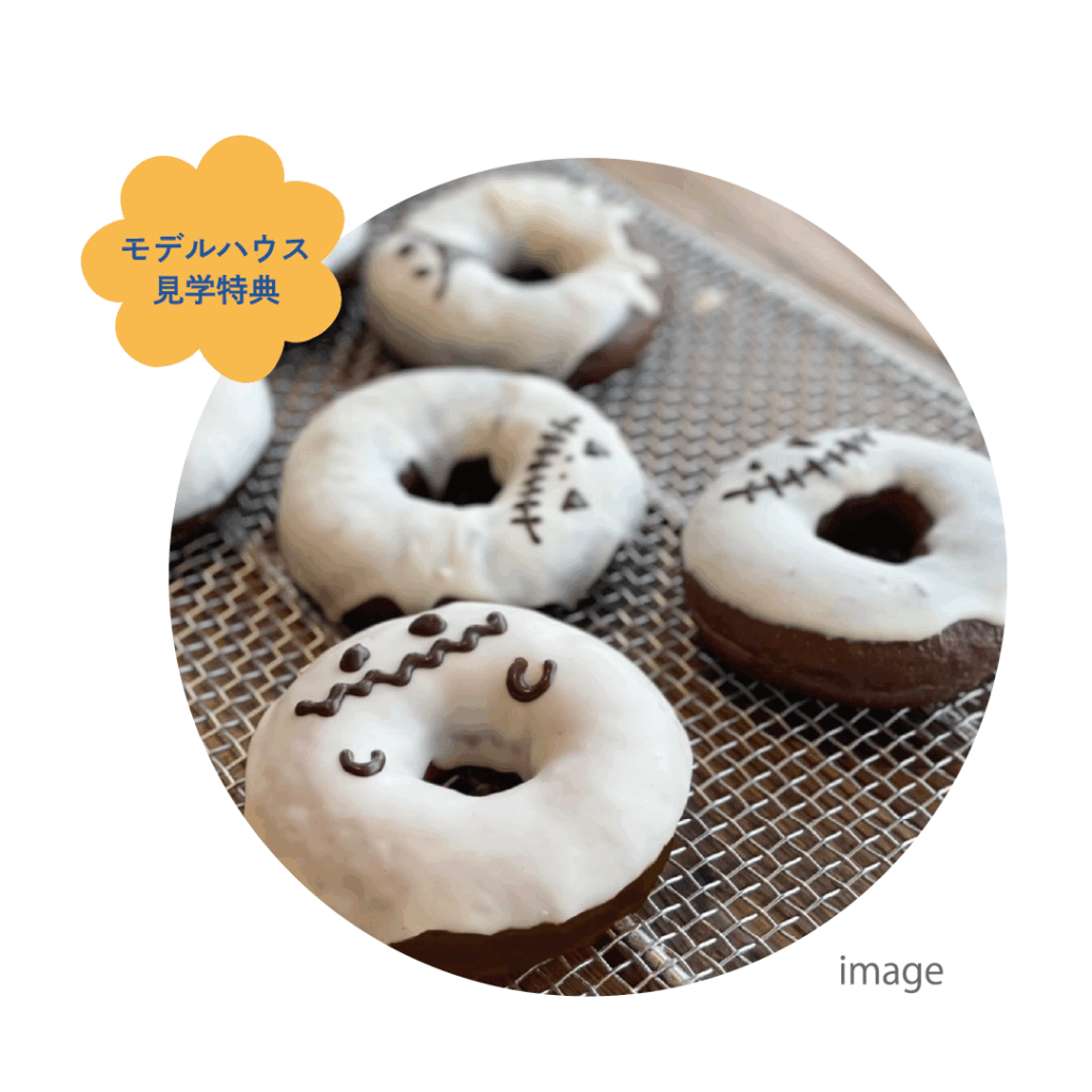 ハウジングセンター内のモデルハウスを1棟以上見学してイベント参加券をGETすると、松阪のドーナツ屋さんFLAP coffeeさんのかわいいハロウィンドーナツをプレゼント!ぜひGETしてみてくださいね!