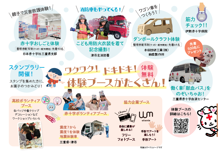 体験ブースの中には、当日「整理券」が配布されるブースもあります。事前に日本赤十字社三重県支部のホームページで詳細やスケジュールを確認しておくのがオススメです。