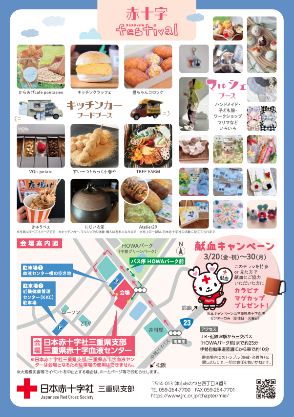 - 会場:日本赤十字社三重県支部 ・ 三重県赤十字血液センター